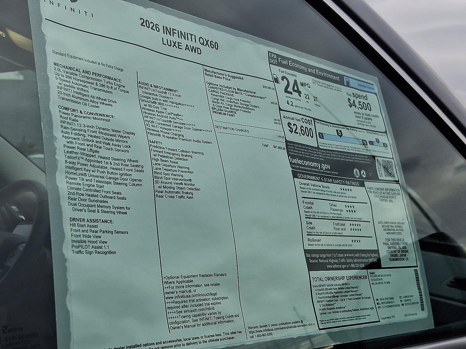 Harbor Gray 2026 INFINITI QX60 LUXE AWD 9-Speed Automatic 2.0L I4 PDI Turbocharged DOHC 16V 268hp