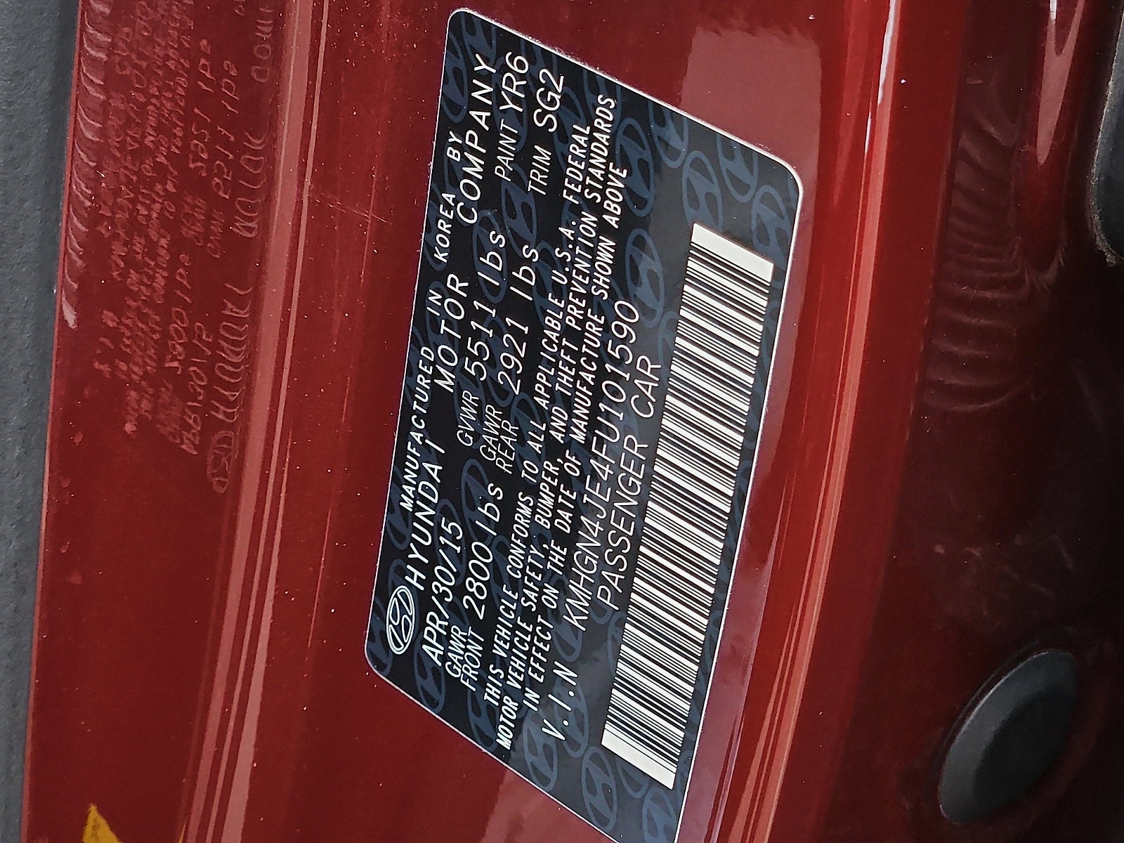 2015 Hyundai Genesis 3.8 Pamplona Red Grey Leather.
