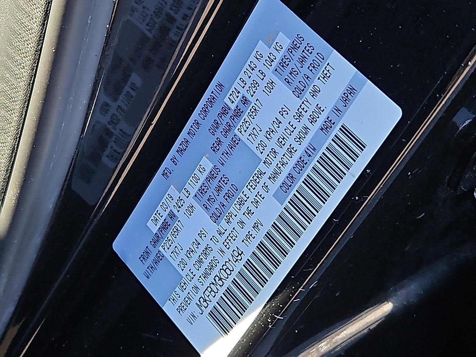 CARFAX One-Owner. Jet Black Mica 2019 Mazda CX-5 Touring AWD 6-Speed Automatic SKYACTIV® 2.5L 4-Cylinder DOHC 16V Just Inspected, 4-Wheel Disc Brakes, 6 Speakers, ABS brakes, Alloy wheels, AM/FM radio, AppLink/Apple CarPlay and Android Auto, Power driver seat, Traction control, Wheels: 17" x 7J Gray Metallic Alloy. Priced below KBB Fair Purchase Price!