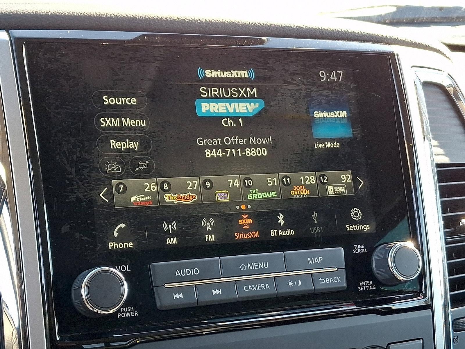 - Radio: NissanConnect AM/FM -inc: 8" color touchscreen display w/multi-touch control, 6 speakers, Apple CarPlay, Android Auto, SiriusXM satellite radio, 2-USB (1 type A, 1 type C) connection ports for iPod interface and other compatible devices, Bluetooth® hands-free phone system, streaming audio via Bluetooth®, hands-free text messaging assistant, Nissan Connect services and WiFi hotspot