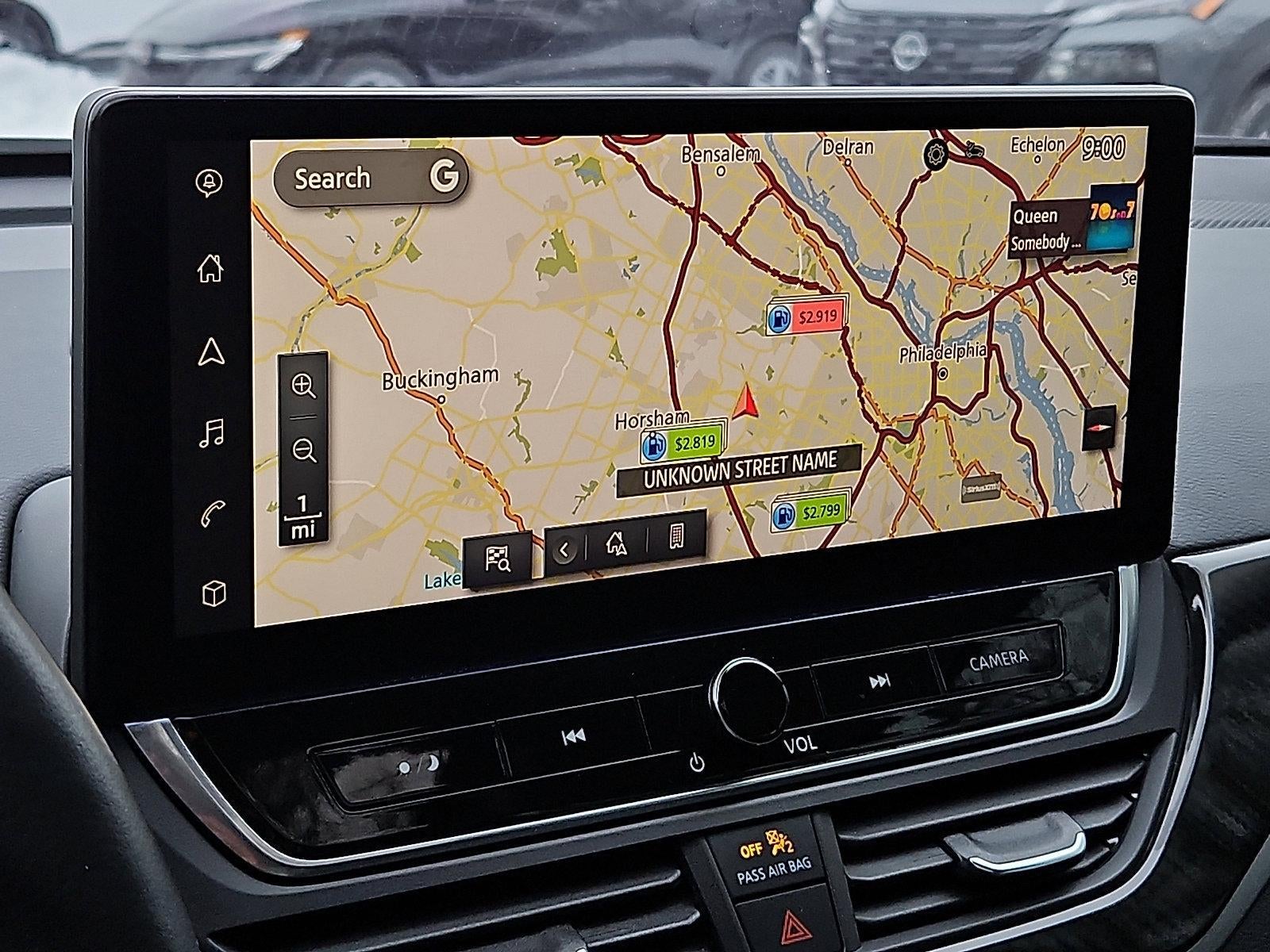 - Radio: AM/FM Audio System -inc: RDS, MP3, 9 speakers, NissanConnect services powered by SiriusXM, Wi-Fi hotspot, RDS, NissanConnect featuring 12.3" HD color display w/multi-touch control, Nissan door to door navigation, wireless Apple CarPlay, premium traffic and MapCare w/complimentary trials, SiriusXM Traffic, SiriusXM Travel Link, wireless phone charging pad, SiriusXM satellite radio w/advanced audio features, 1 front illuminated USB port (type-C) for compatible devices, SiriusXM radio w/advanced audio features, Bluetooth® hands-free phone system, streaming audio via Bluetooth®, hands-free text messaging assistant, Siri Eyes Free and Google Assistant voice recognition