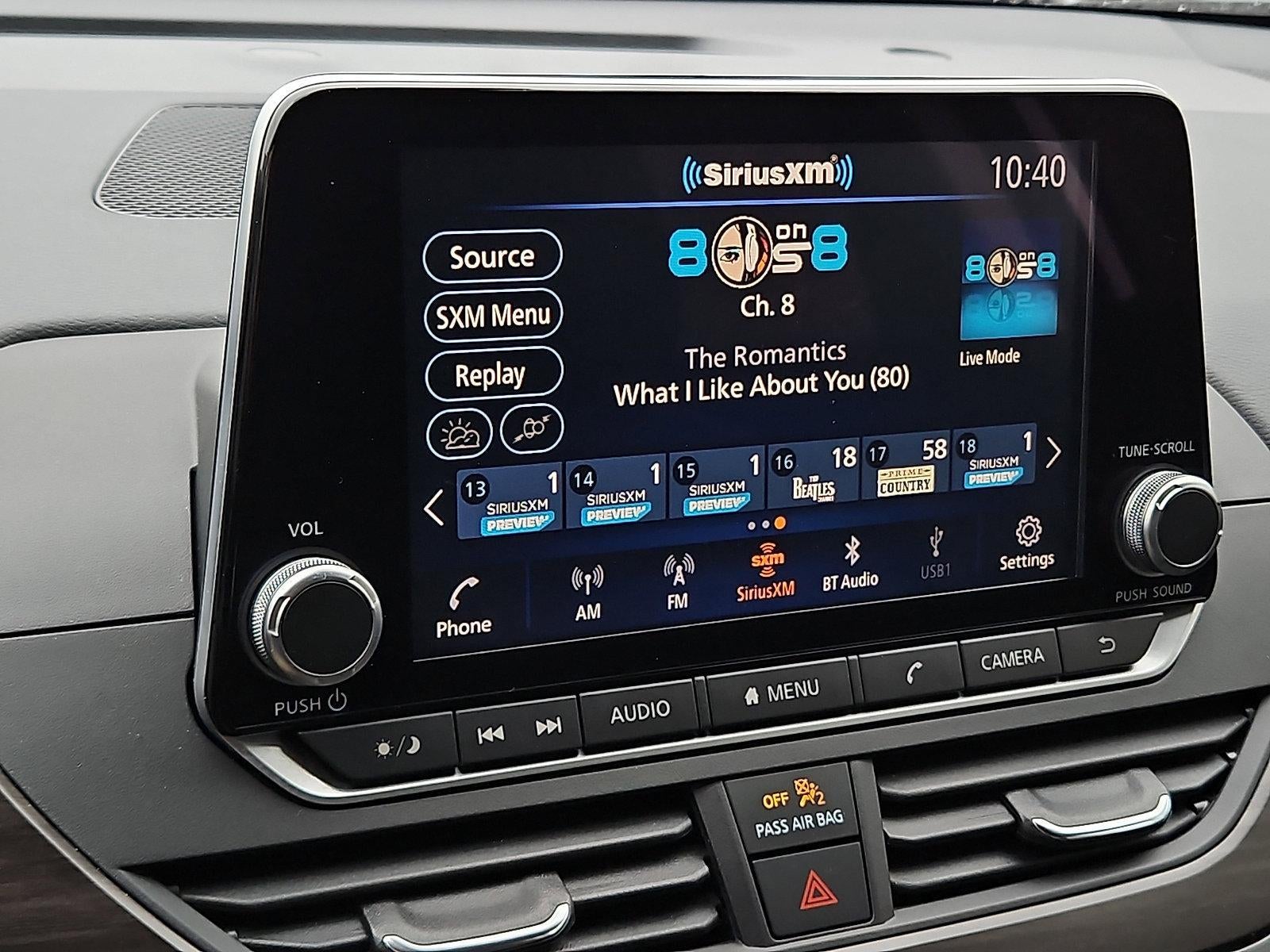 - Radio: AM/FM Audio System -inc: RDS, MP3 and aux-in, 6 speakers, NissanConnect featuring Apple CarPlay, Android Auto, 8" color touch-screen display, 1 front illuminated USB port (type-C) for compatible devices, SiriusXM radio w/advanced audio features, Bluetooth® hands-free phone system, streaming audio via Bluetooth®, hands-free text messaging assistant, Siri Eyes Free and Google Assistant voice recognition
