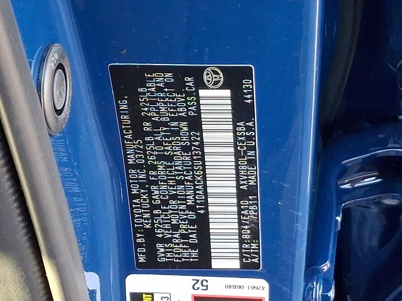 Recent Arrival! Certified. 2025 Toyota Camry Reservoir Blue Fresh Oil Change, 1 Year Free Maintenance, Camry SE, 2.5L 4-Cylinder 16V DOHC, Boulder Cloth, Alloy wheels, Apple CarPlay/Android Auto, Radio: Toyota Audio Multimedia w/8" Touchscreen, Remote keyless entry, SofTex & Fabric Seat Trim. CARFAX One-Owner. Clean CARFAX.