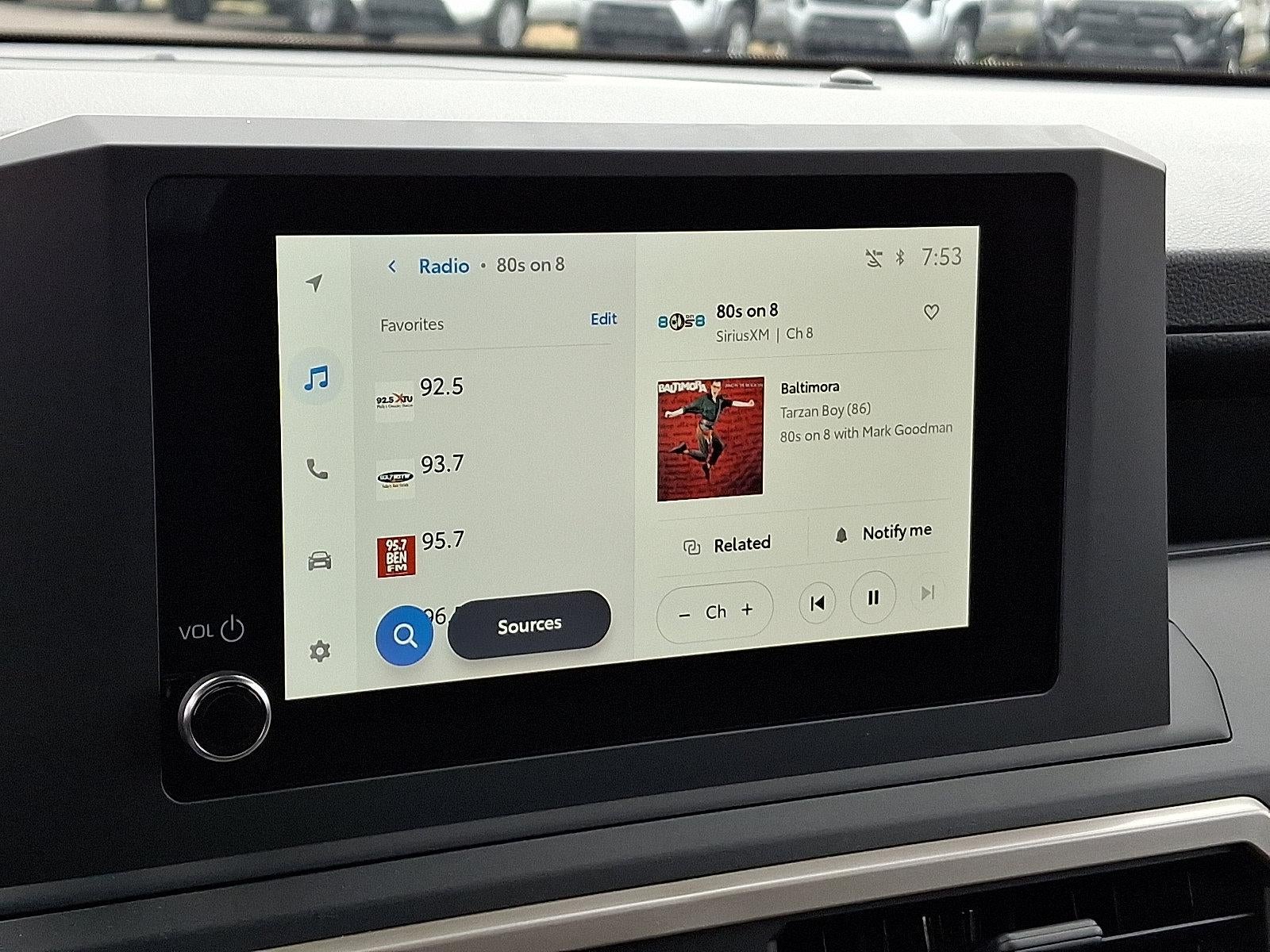 - Radio: 8" Toyota Audio Multimedia -inc: touchscreen, 4 speakers, wireless Apple CarPlay and Android Auto compatibility and SiriusXM w/3-month Platinum Plan trial subscription, See toyota.com/audio-multimedia for details